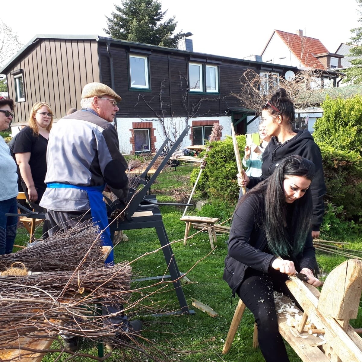 altes Handwerk wie z.B. Besenbinden als Abschlussprojekt des Seminars.